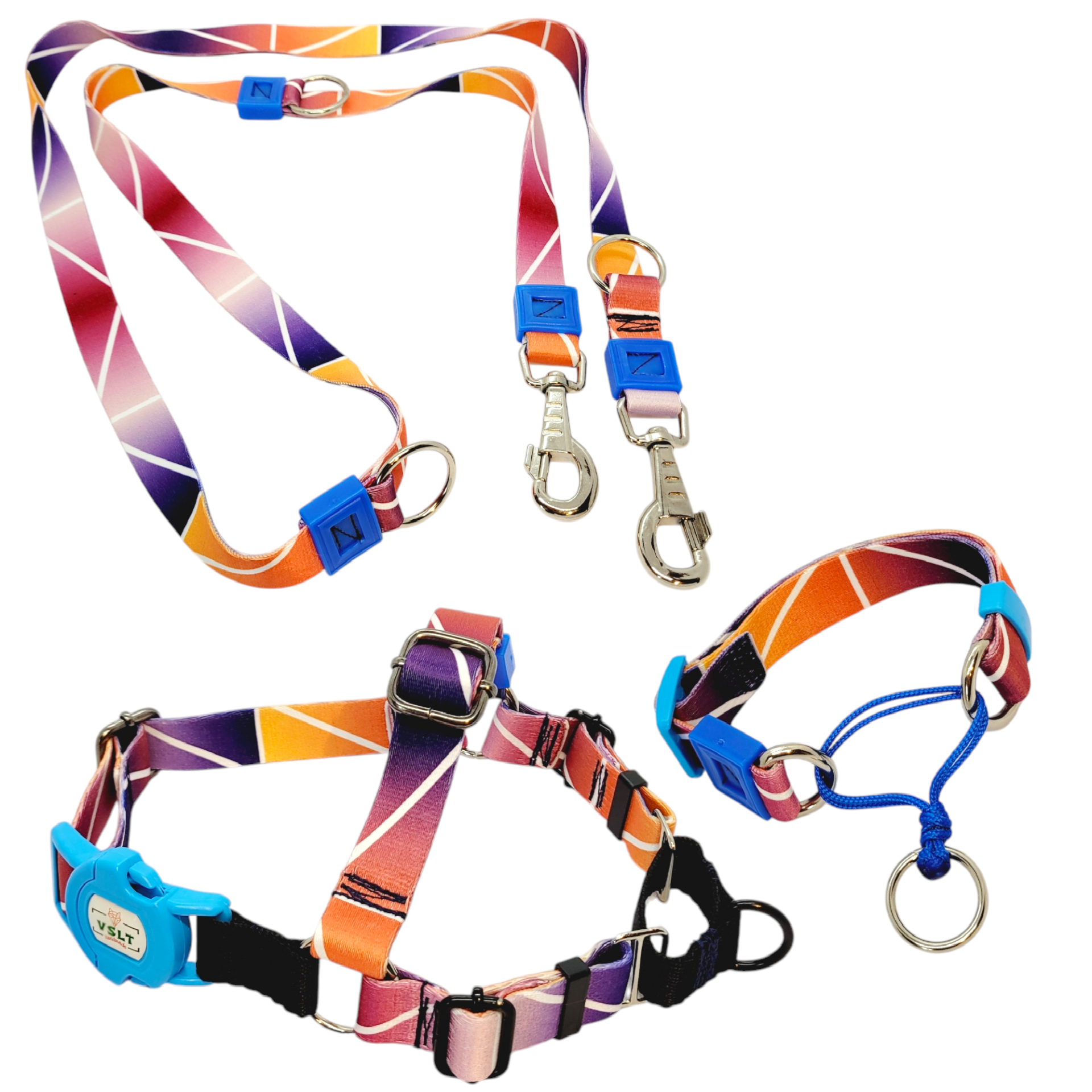 ✔ Boyun eğitim tasması + önden çekmeli göğüs tasması veya