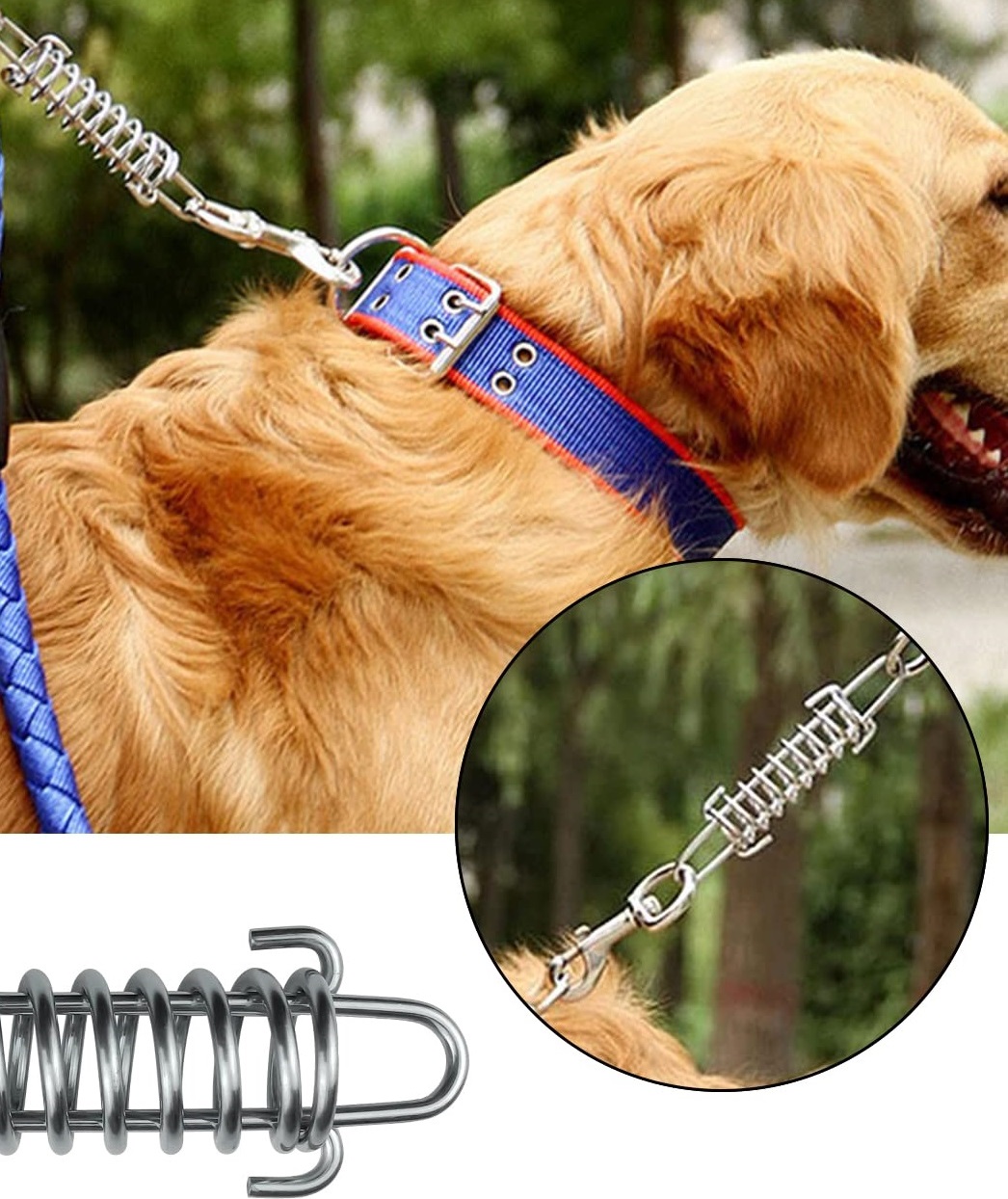 Anti–şok yaylı köpek kayışları, köpeğin ani çekiş veya sıçrama hareketlerinde oluşan darbeyi absorbe etmek için tasarlanmış özel kayışlardır. İçerisindeki yay bölümü, ani çekişlerde ortaya çıkan stresi hem köpeğin hem de sahibinin üzerinden alarak darbeyi yumuşatır.