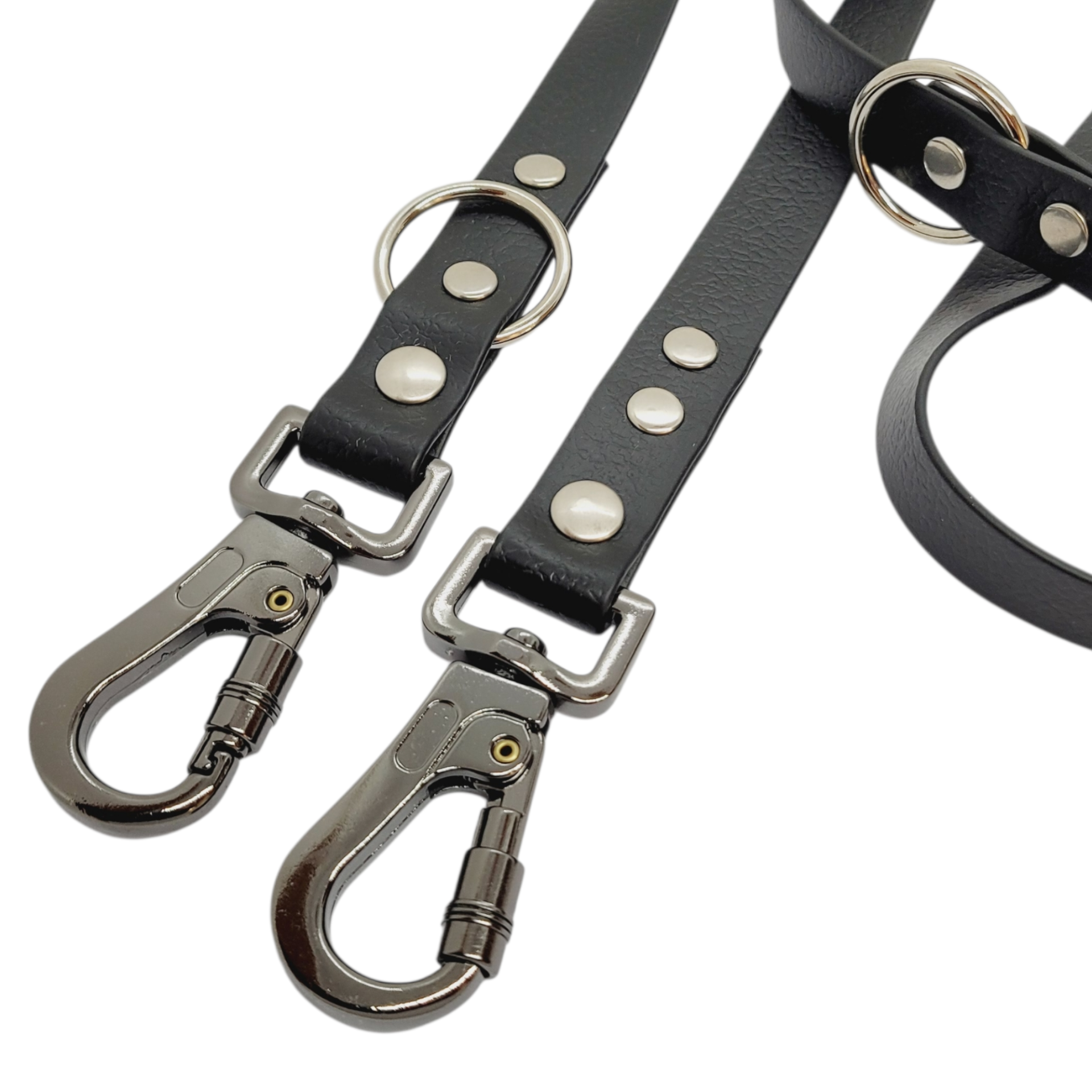 💛 El Yapımı - Biothane Deri Benzeri, Çift Karabinalı Köpek Kayışı